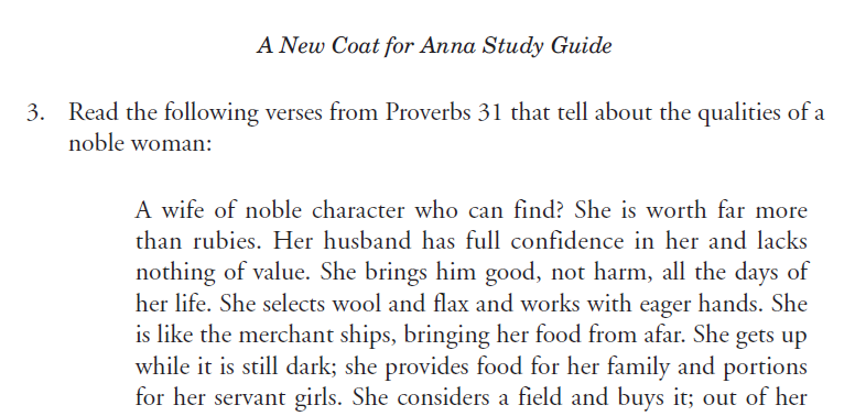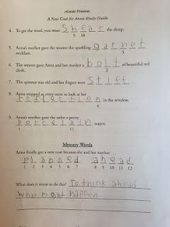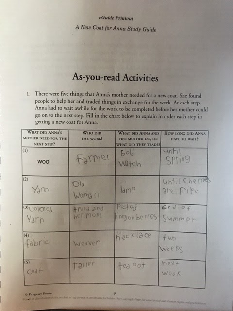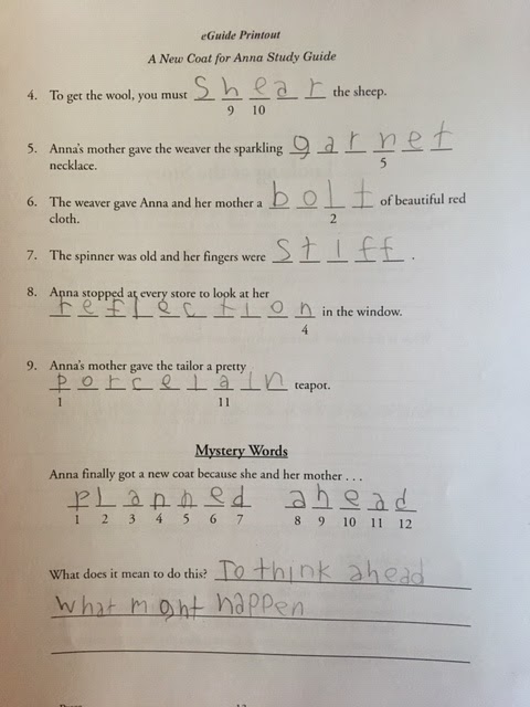 A New Coat for Anna Study Guide was written for grades K-3. I did have to purchase the book separately for this study. It's a delightful little story about a little girl, Anna, who needs a new coat. You follow Anna and her story as her mom acquires the necessary materials one by one needed to complete the coat. From the initial wool needed to the final tailored product, it shows kids what goes into producing a product that is often not appreciated when it is simply on a store rack or shelf. It also shares a time (after WWII) when money was scarce and the need for supplies often meant trading one thing for another.