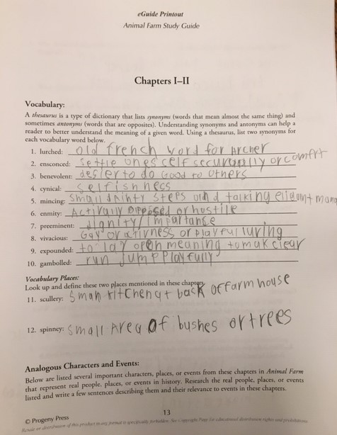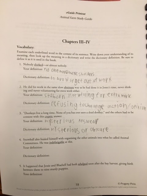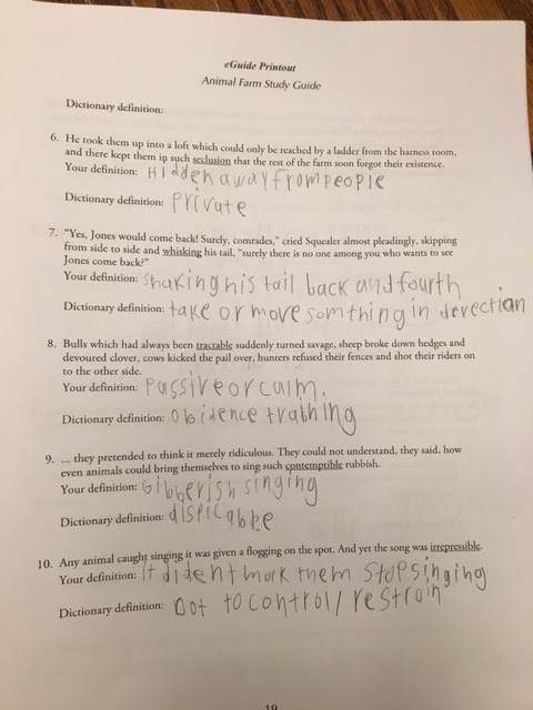 Last but not least is a few words about the Animal Farm Study Guide. I had an electronic copy of this book already. My high schooler does NOT like language arts or writing or any kind of "study guide" activities. That being said, I caught him really getting intrigued and doing a little of his own research online when he was asked to complete some of the sections in the study guide. He is not liking the story because of the sadness and opposition but I think he will surely glean from it by the time he is finished. All things aside and with no political or religious discussion, I think the story is timely for right now and what is going on in our world.