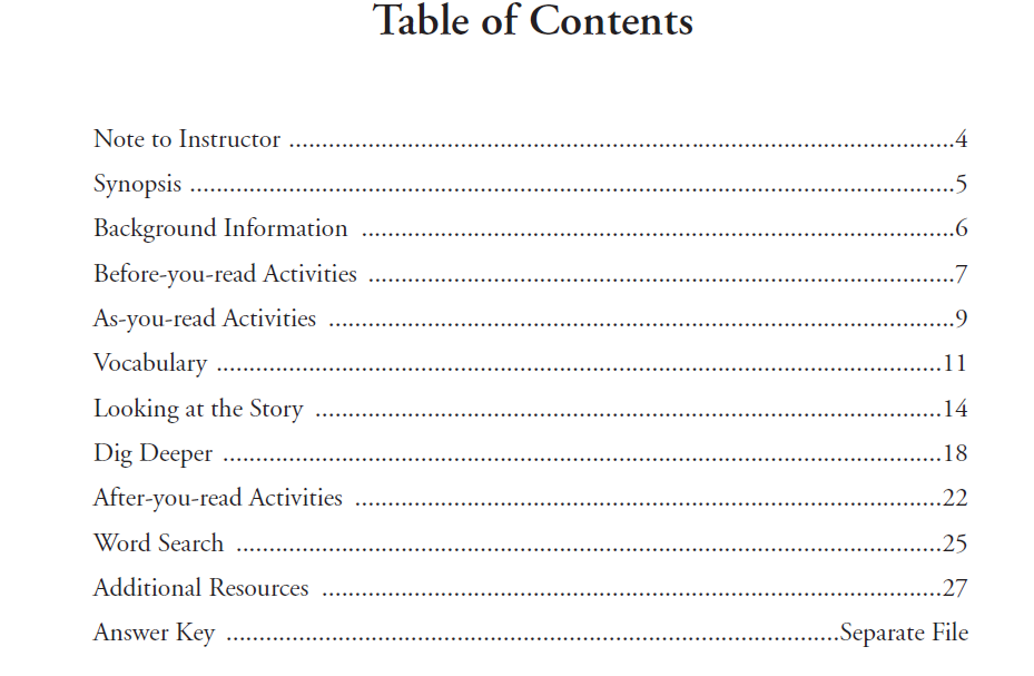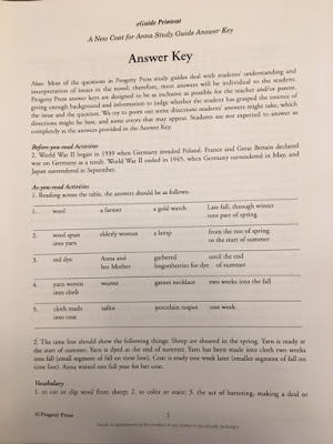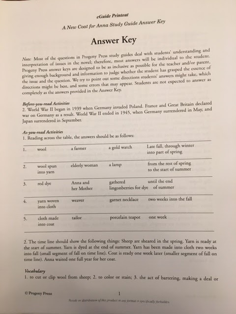 | Sample Answer Key page for A New Coat for Anna |