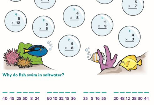 This game is called Gone Fishing and is a riddle game for practicing the x4 and x5 facts!