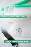 Amazing quality our premium reusable food bags provide a superior user experience Food grade material leak proof Best to store liquid and use in the refrigerator and freezer Most importantly they are safe for babies and pets Leakproof and freezer safe upgraded reusable 1 gallon bags with a double thick seam provide an airtight leak proof seal With the upgraded wide side and triple thick seal these reusable freezer gallon bags make it easier to open and close the bag