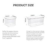 Classified storage designthe large container can store lettuce spinach cabbage peas mushrooms broccoli tomatoes carrots cucumbers corn celery asparagus bell peppers beets cauliflower onions and other veggies the 2 medium containers is perfect for grapes cherries strawberries kiwis lemons clementines figs plums cherry tomato blueberries raspberries blackberries grapes and other small fruits space saving clean and not odor