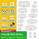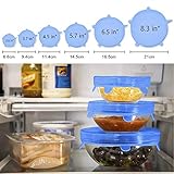 16 pack 7 size 2 shape our silicone stretch lids come in 16 circle square sizes fitting containers from 1 to 11 diameters which allows you to cover most types of big medium or small containers that are round rectangular or square like bowls bottles cans dishes glassware jars jugs pyrex tins even pots and pans This is also an ideal fresh keeping method for fruits like melons lemons oranges and so on a set of magic stretchy lid for food marination as well as travel use