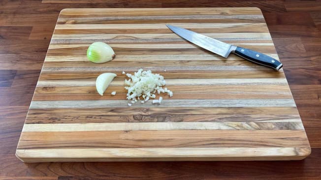 The board is blissful to cut on. In addition to rooting firmly on a counter, it provides the perfect amount of feedback as you cut. It’s also worth noting that it still looks pretty good after a decent amount of prep. Some of the other boards ended up with cut marks and even a few deep gouges.