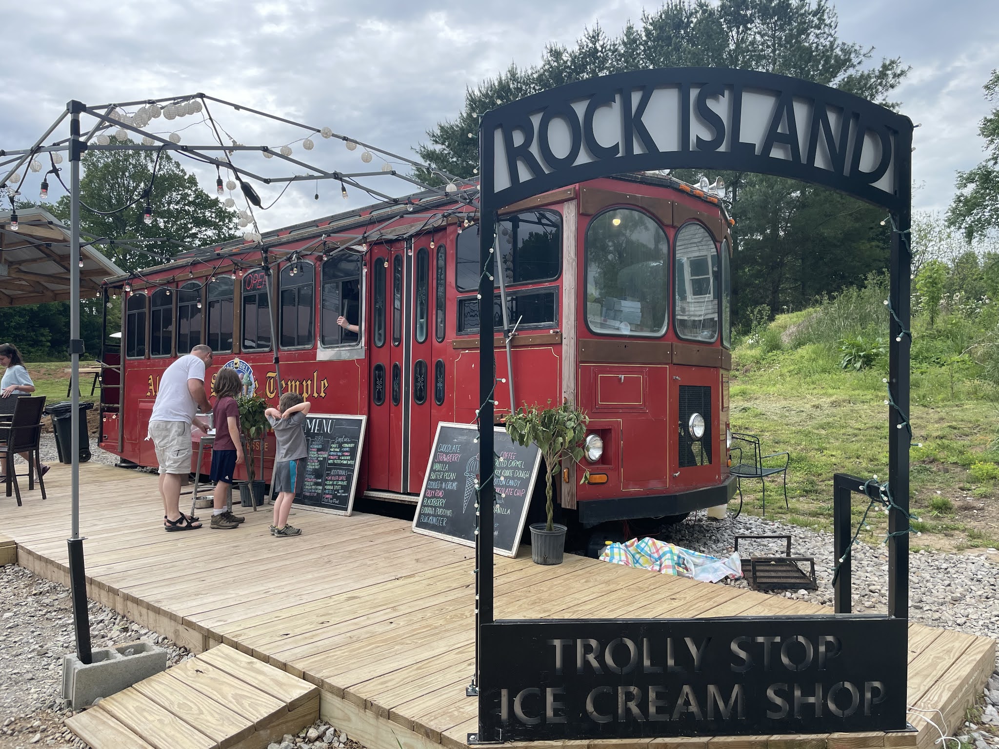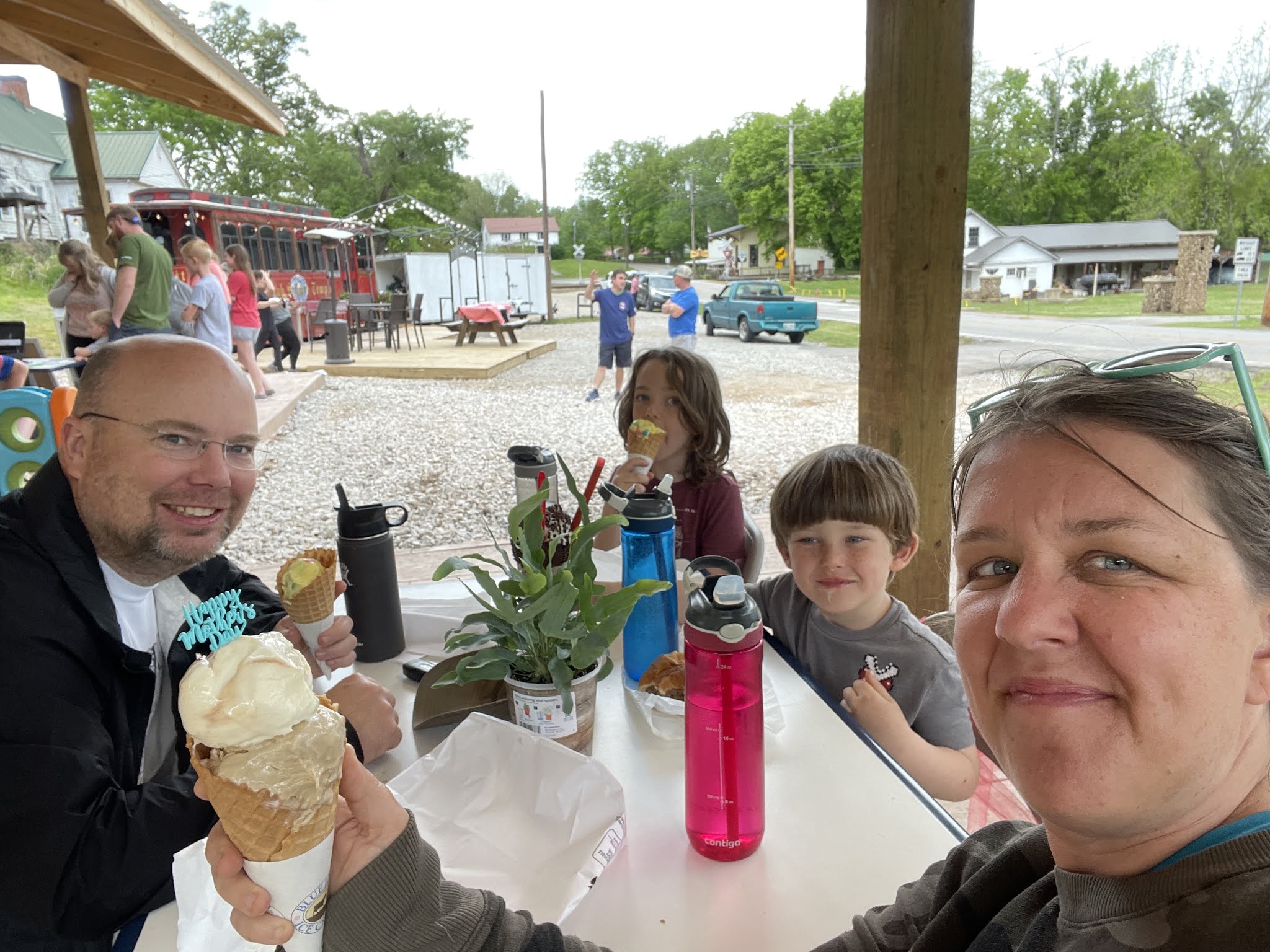 Finally, I let Daniel know that the only thing I really wanted for Mother's Day was to not have to cook all day. Breakfast was taken care of at camp, and lunch was a stop at the Rock Island Ice Cream Trolly. This was a hopping place and we had to wait nearly 45 minutes for our treats. Thankfully Daniel and the boys were able to walk across the street to get fresh burgers and tots from the Rock Island Market restaurant. Our burgers were ready before our ice cream so we enjoyed them at the Trolly pavilion. The ice cream was excellent and worth the wait. Once we got home from camp, we unloaded the camper and opted for pizza and a movie. No cooking or dishes for me today, which is all I really wanted :)