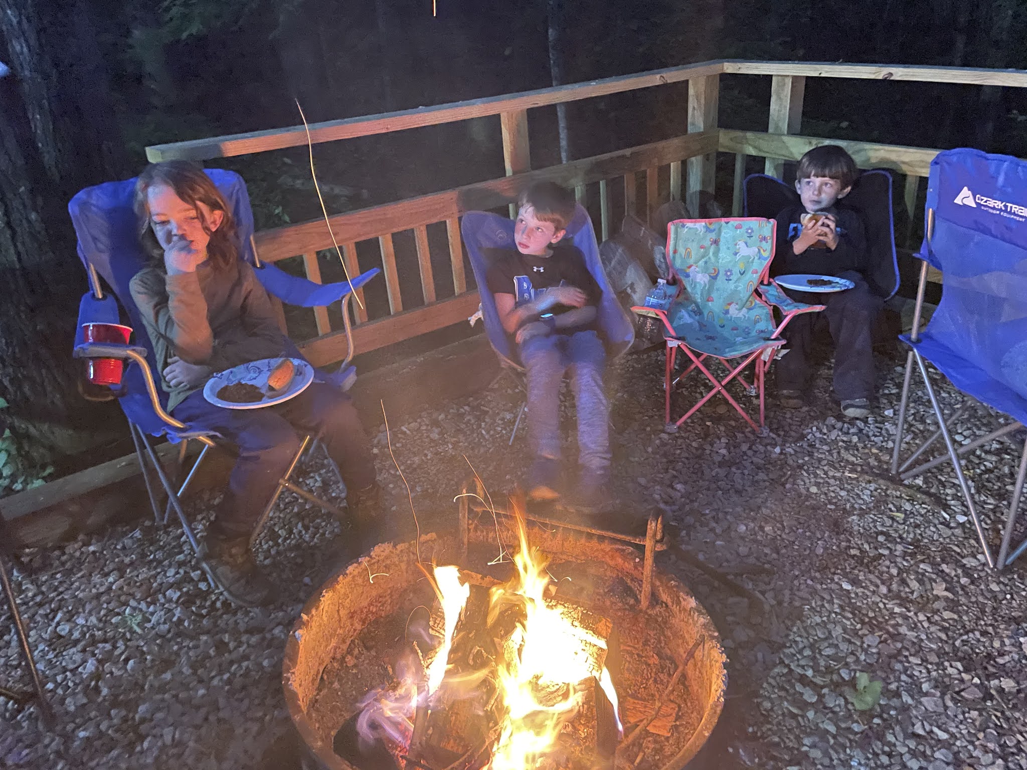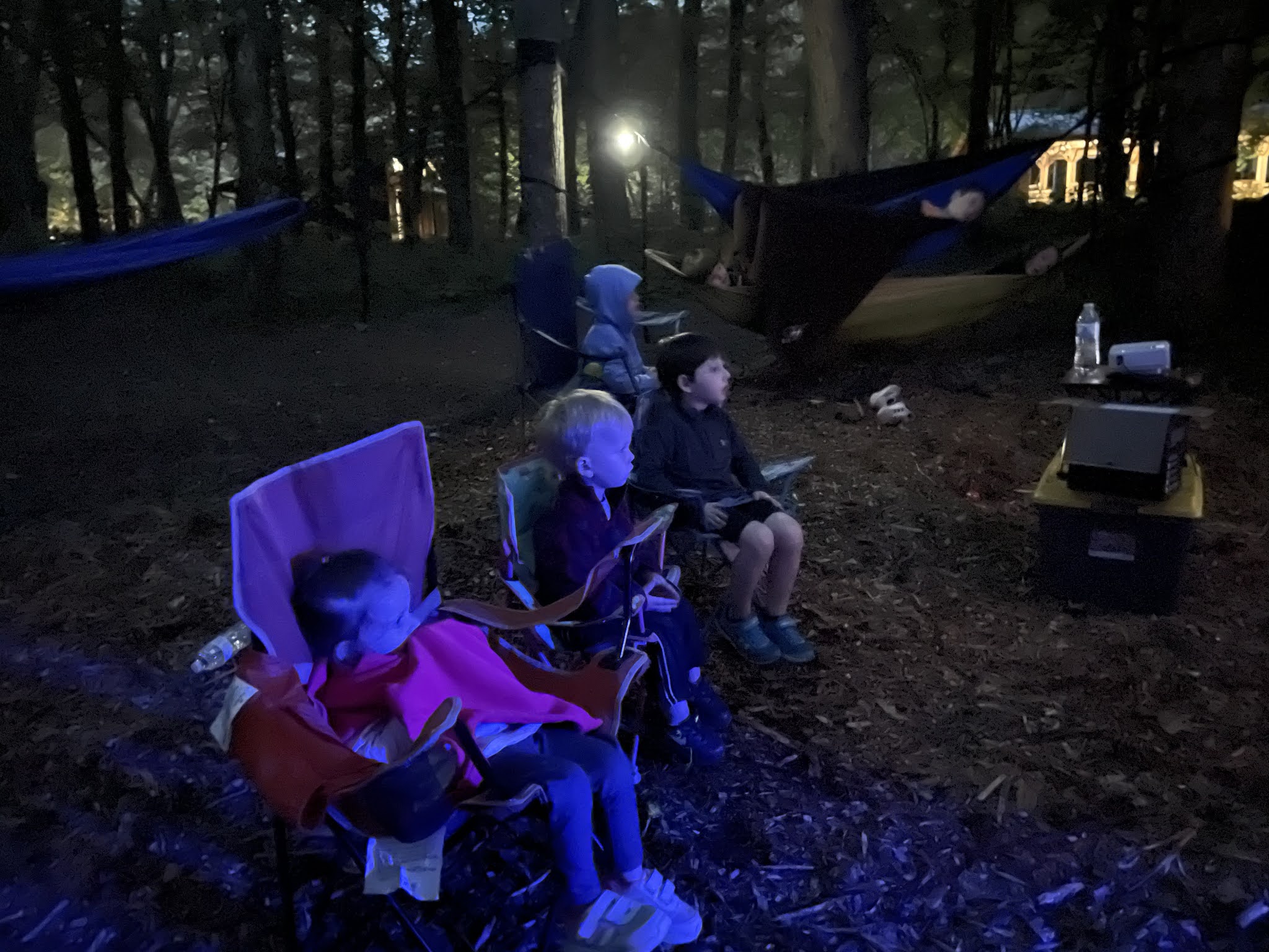 We set up outdoor movies for the kids to watch from hammocks, and we took the kids down to the river to fish. It was good weekend.