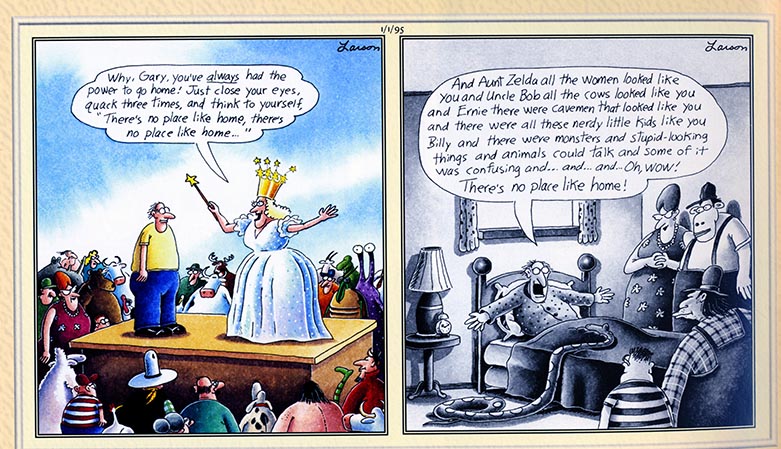 The popular one-panel comic, created by Gary Larson, ran for fourteen years. At the height of its popularity, it was published in 1,900 newspapers daily. Occasionally, Mr. Larson lets a new panel escape from his padded cell.