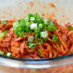 This one has the flavor of fresh kimchi (not fermented), so it can also be a quick substitute for kimchi. Its great in bibimbap as well. Its also a classic dish thats served with bossam (boiled pork wrapped in salted napa cabbage).