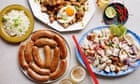 April is Filipino food month, so here’s a characteristically porky trio: sinuglaw, a combo of crisp pork belly and citrussy ceviche; sisig, a rubble of onion and pork in a tangy sauce; and longganisa – DIY spicy Filipino sausages